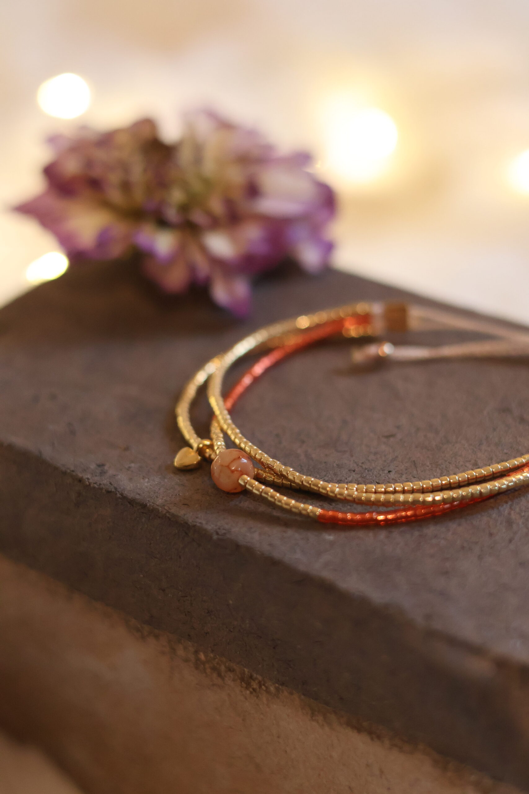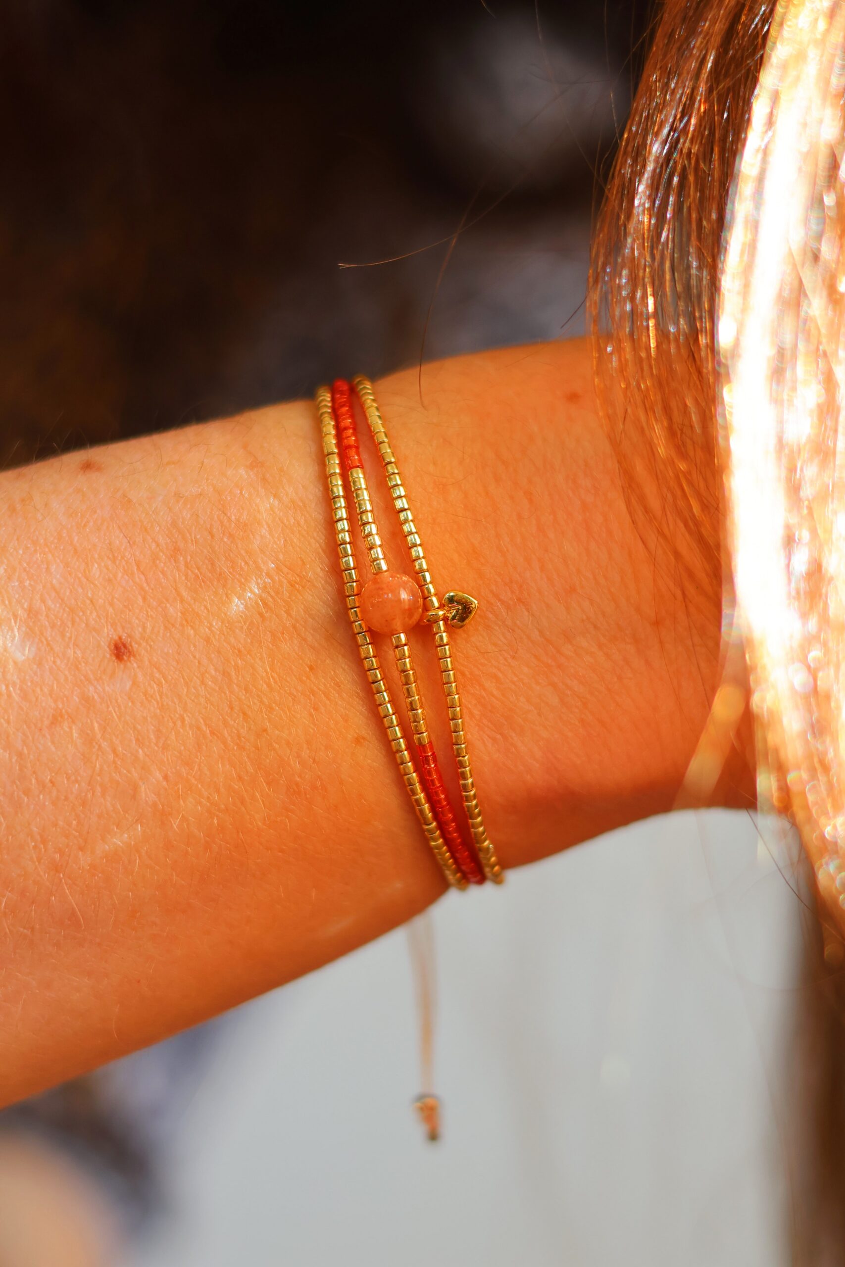 Ce bracelet est réalisé avec de petites perles en verre, que l’on nomme Miyuki.