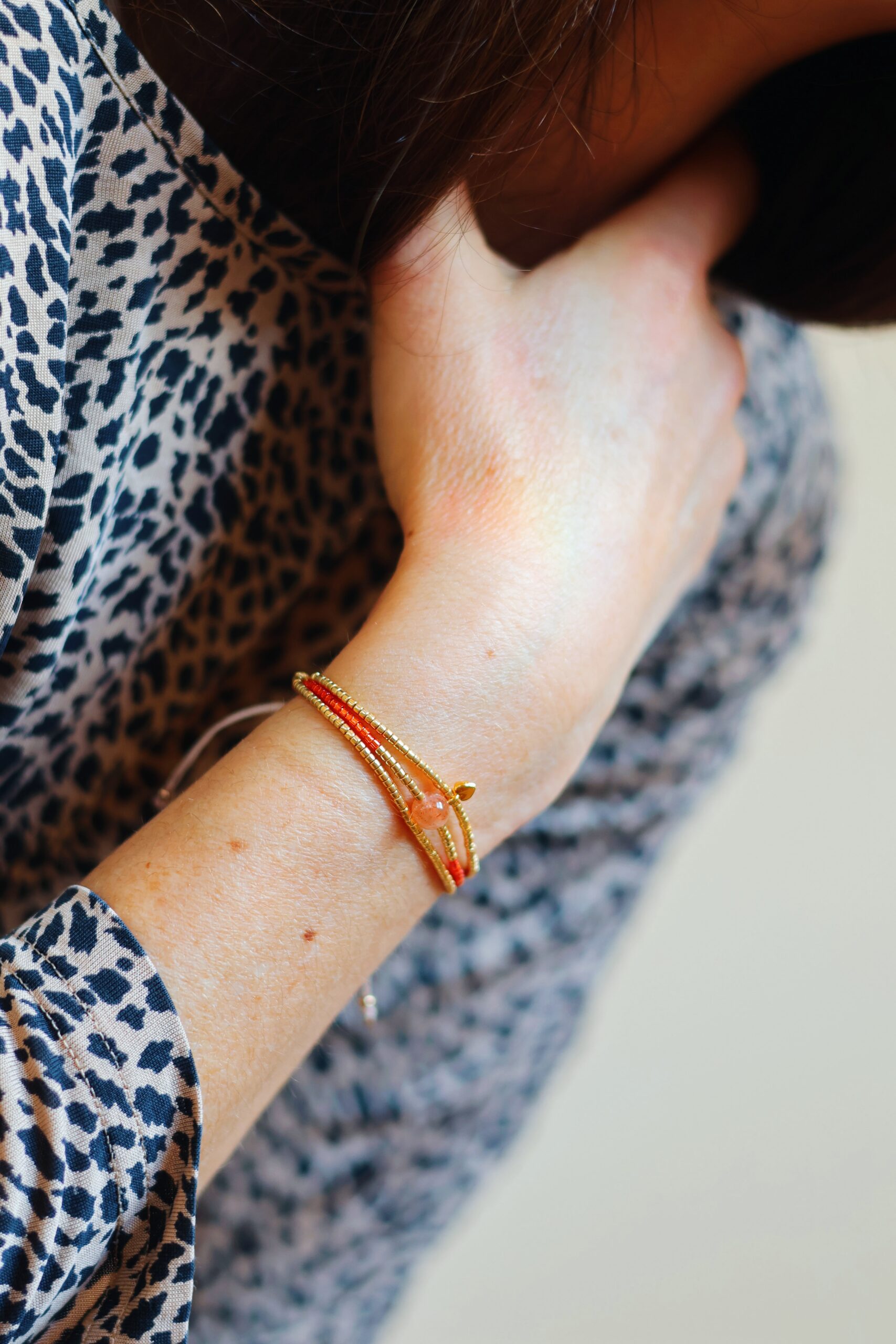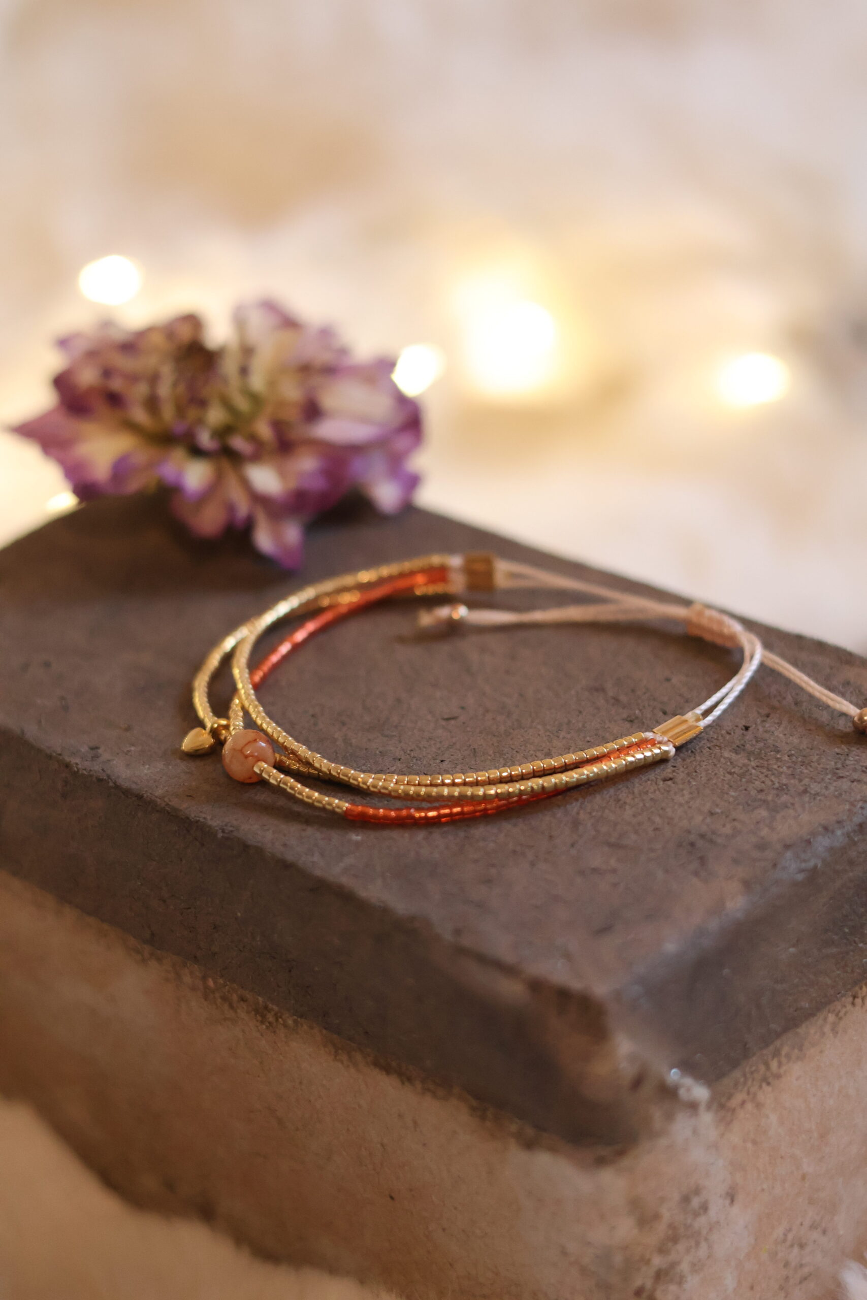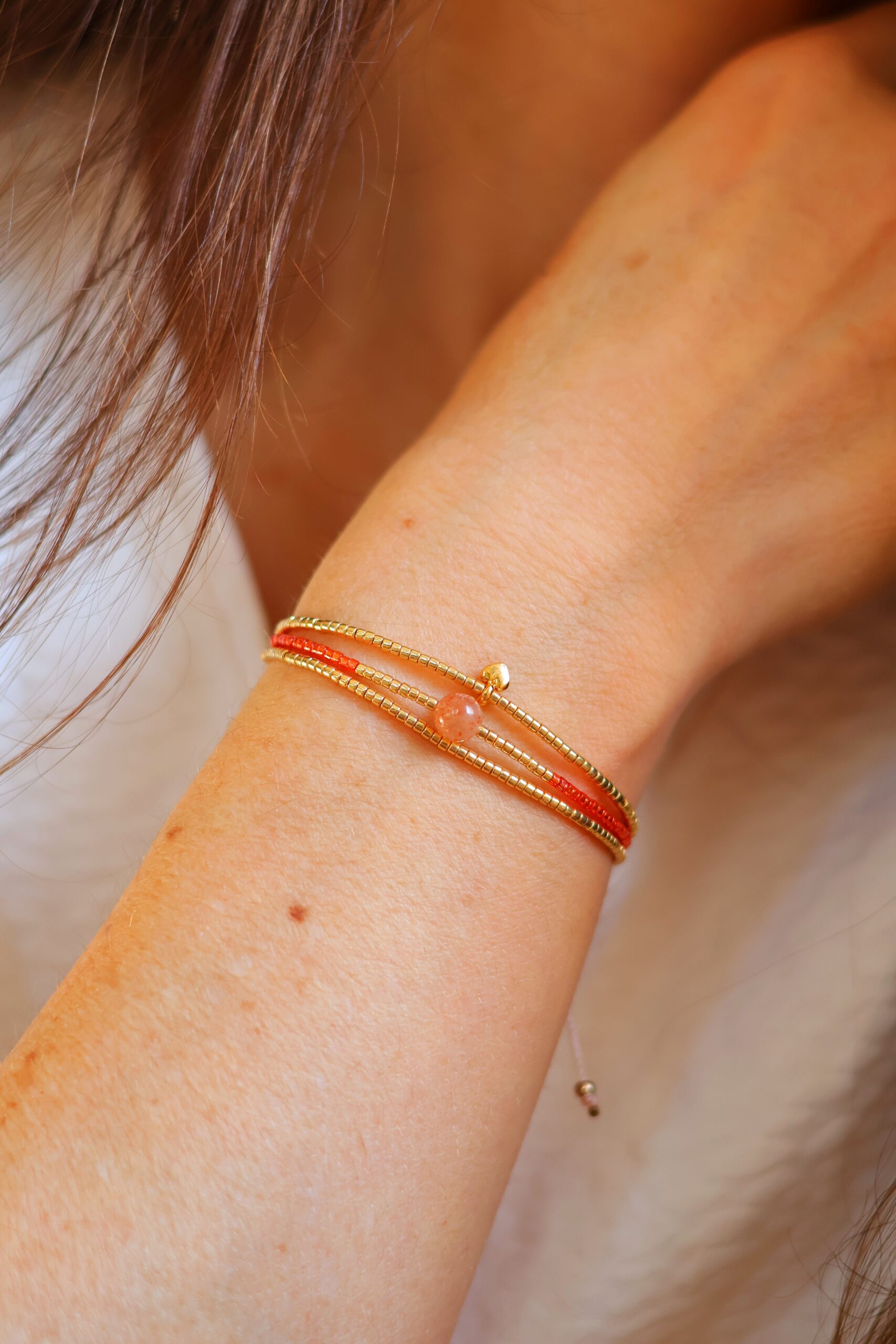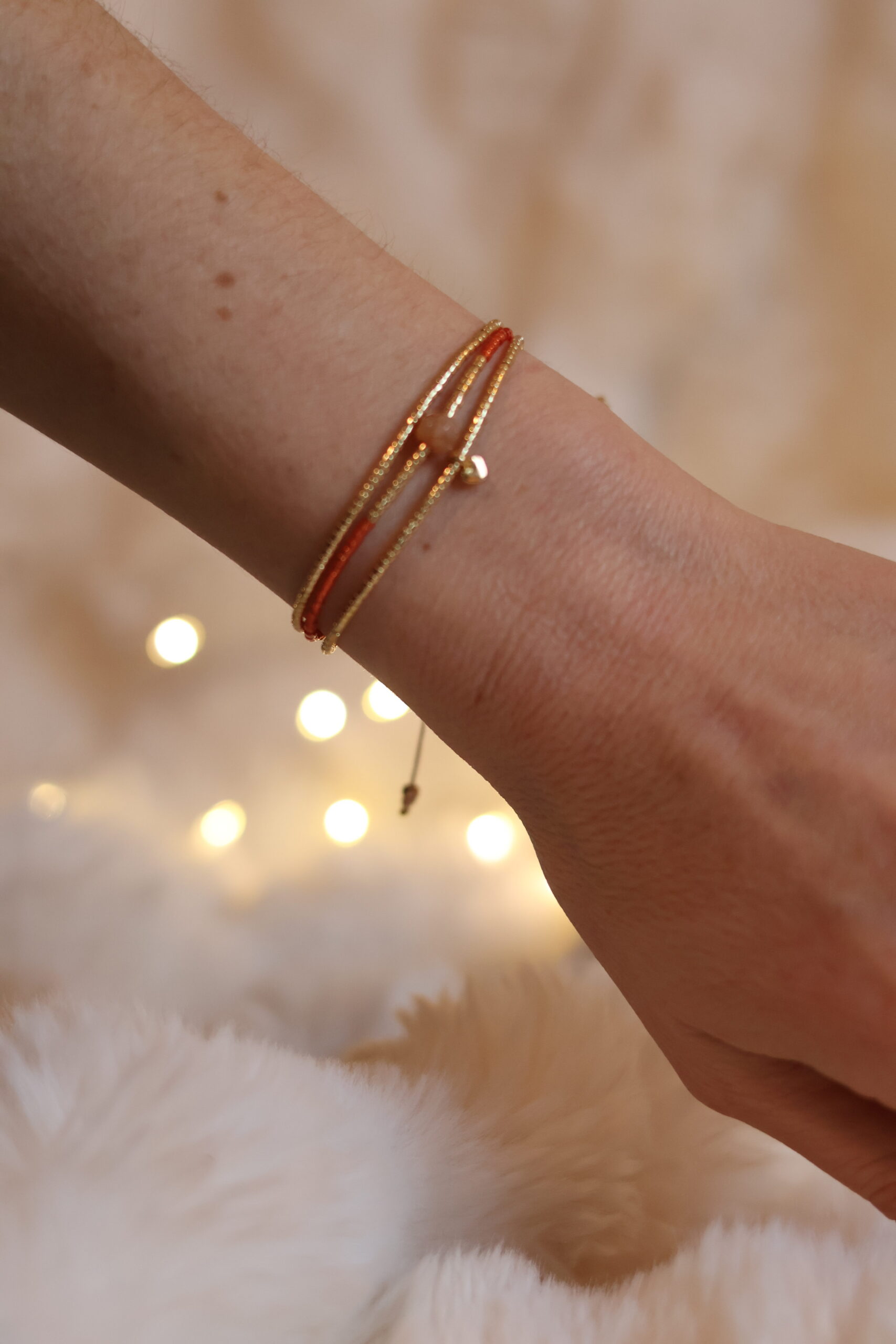 L’attache est réalisée avec un nœud en macramé, ce bracelet s’adapte donc à tous type de poignet.