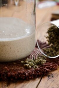 Moi j’aime rajouter nos belles plantes sauvages, ici de l’armoise sauvage. Tu peux bien sur mettre les épices de ton choix pour apporter une petite touche souhaitée.
