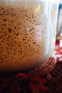 -Ensuite laisser reposer cette pâte 1 à 2 journées. elle va commencer à fermenter, des bulles vont apparaitre.
